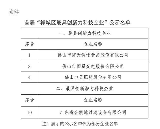 近日,佛山市禪城區經濟和科技促進局舉辦首屆“禪城區最具創新力科技企業”評選活動,廣東省金凱地過濾設備有限公司憑著在企業創新條件、創新資源、創新價值、行業領導力、創新產出等方面的優勢在初評中脫穎而出,并在復賽中在研發團隊、核心技術、市場模式、未來前景四個方面的評比中表現突出,獲評為“最具創新潛力科技企業”。
